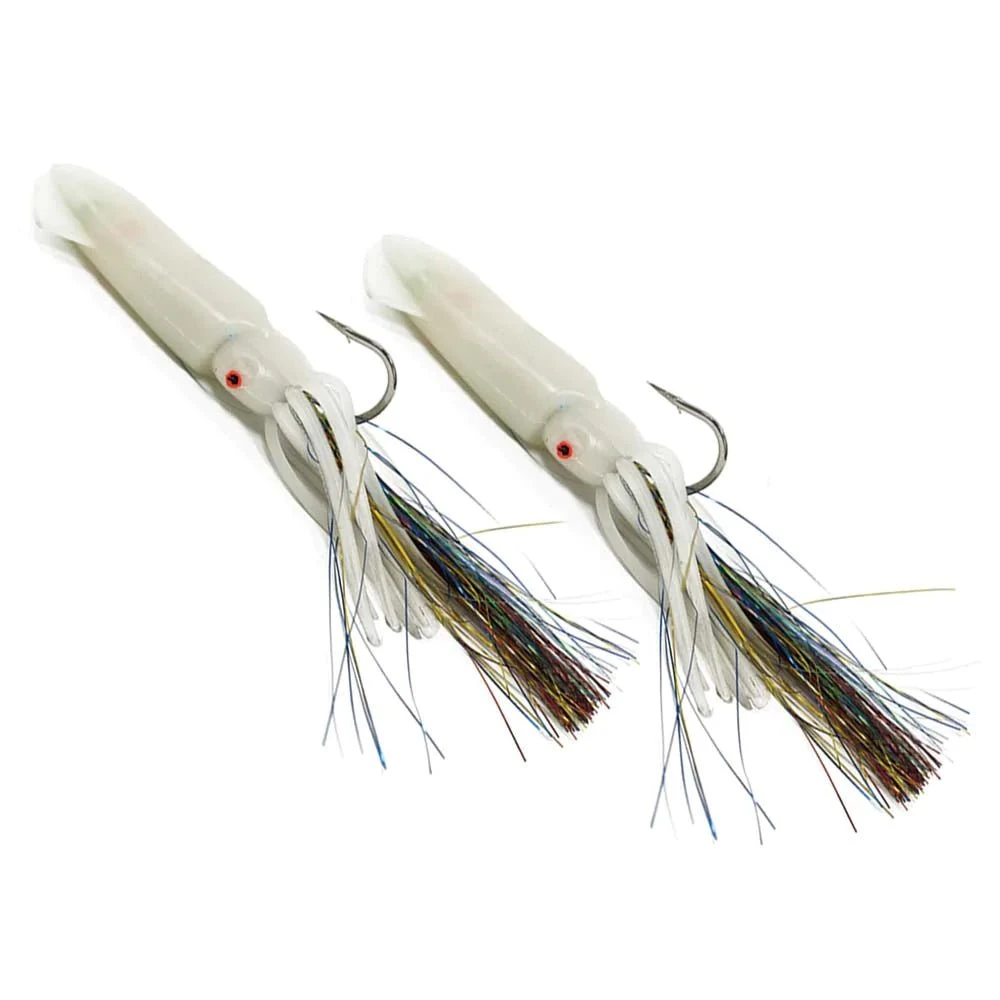 The Ahi USA 7″ Rock Cod Squirts are ready to fish and come equipped with glow-in the-dark squids and multicolored Mylar skirts that fish can’t resist. The Jumbo squirts are 7 inches long, come in two colors (Pink Glow and Glow) and equipped with heavy duty 9/0 hooks, 80 pound test monofilament fishing line, heavy duty swivel, and weight snap.