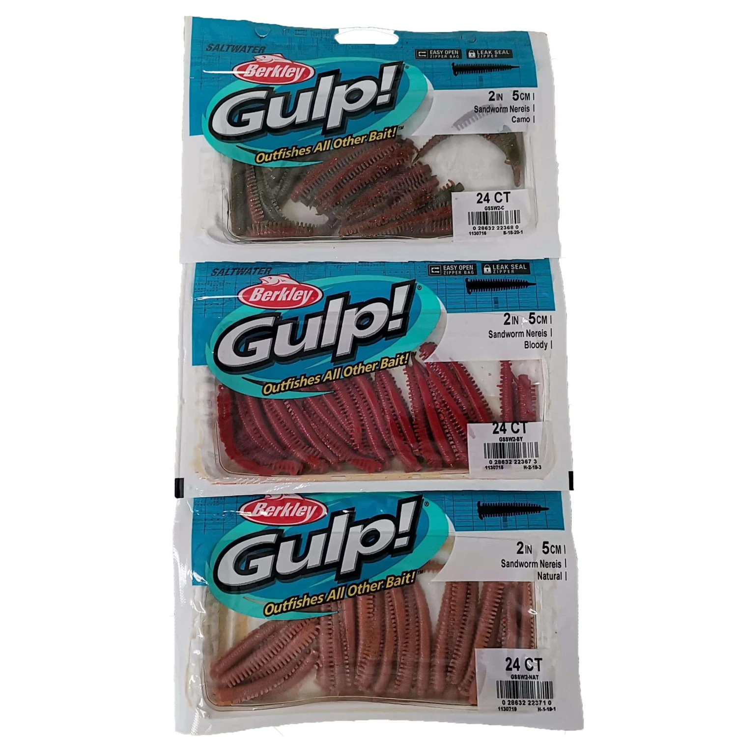 Berkley Gulp!® Sandworms are a classic and effective lure for bay and surf. Use them on a Carolina rig, and you’ll get perch, croakers, corbina, halibut and more! The 2″ Camo is the popular size and color, but the others will get you bit in different situations.
