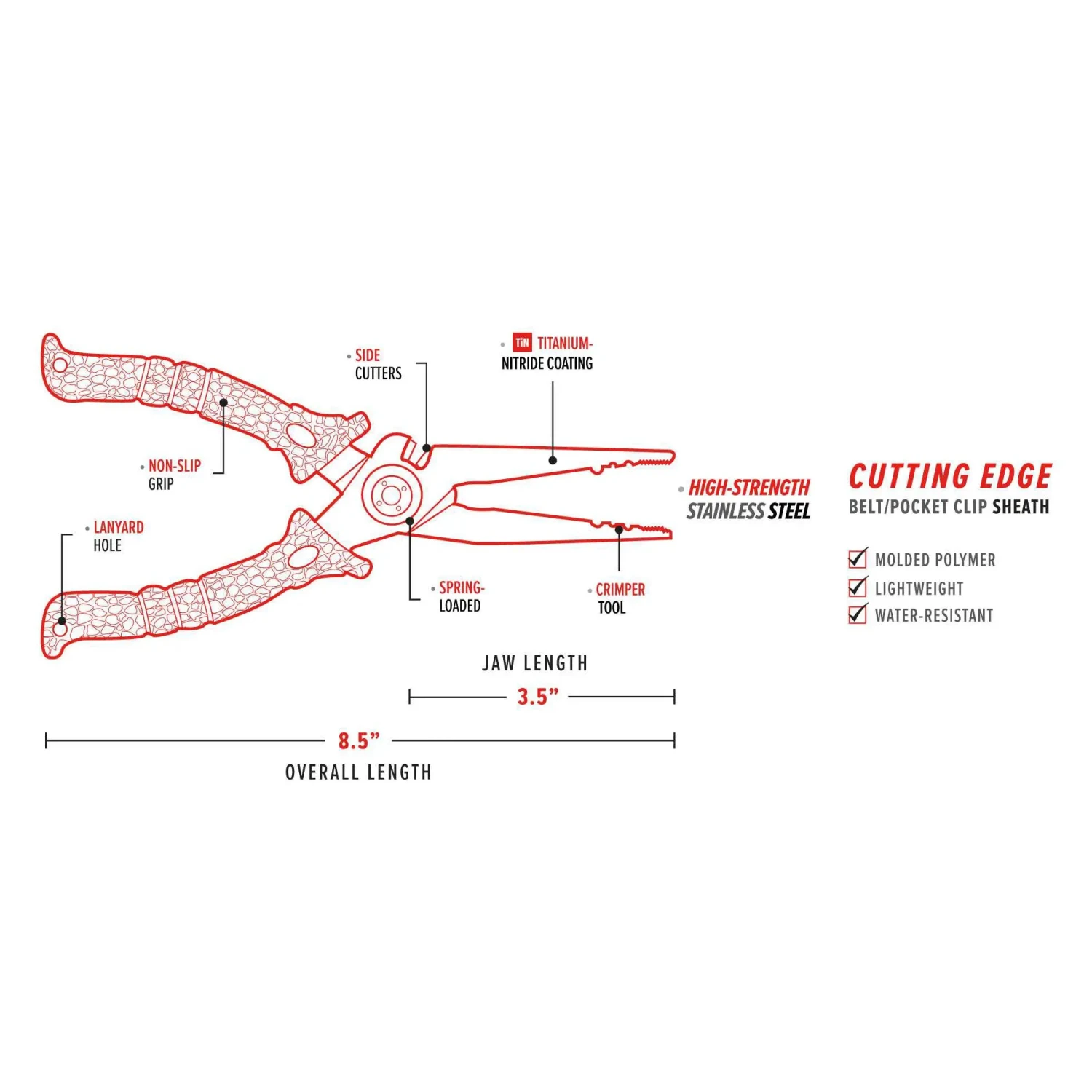 The Bubba Stainless Steel Pliers bring a new level of strength and durability to fishing pliers. Developed with premium, high-carbon stainless steel and a titanium nitride coating, these pliers are purpose-built to withstand extreme duress and resist corrosion. They come equipped with carbide cutters, crimping cutouts and are spring-loaded, so they are always ready to go. The Stainless Steel Pliers also provide a high-end, molded polymer sheath with belt clip that allows for easy one-handed access and secure storage. On top of all this, they are engineered with our iconic, non-slip grip for maximum control. These are the last set of fishing pliers you will ever need. Featured in both 6.5” and 8.5” sizes.