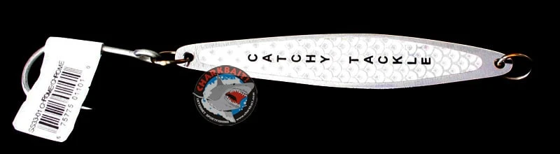Catchy is another So. Cal. firm that’s making big waves with virtually all of their excellent new lures. In this instance, Catchy has brought back an old favorite Sea Strike Jigs. They’ve updated the product as you’ll see, but retained that old productive action.Catchy Tackle brought back an old favorite, and made some nice improvements. The shape is the same, nice swimming action, but the action is geared towards wahoo. The lures are a bright chrome, on the flat side Catchy has added a prism finish in silver, blue, purple or red. The lure’s matched with a single siwash hook for better penetration. They’re about seven inches in length.