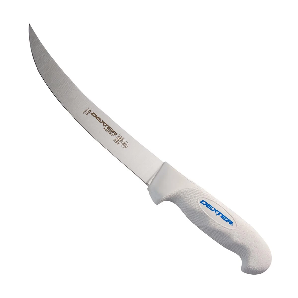 The Dexter SG132N-8 8″ sport fishing knife. Big fish need big knives and this knife will get the job done. This knife will fillet or steak out any fish with its ultra-sharp blade with the right amount of stiffness. It features our SOFGRIP™ handle that is soft to the grip and provides great control along with slip resistance. It features our proprietary high carbon, high alloy, stain free DEXSTEEL™. This knife is NSF certified and is made in the U.S.A.