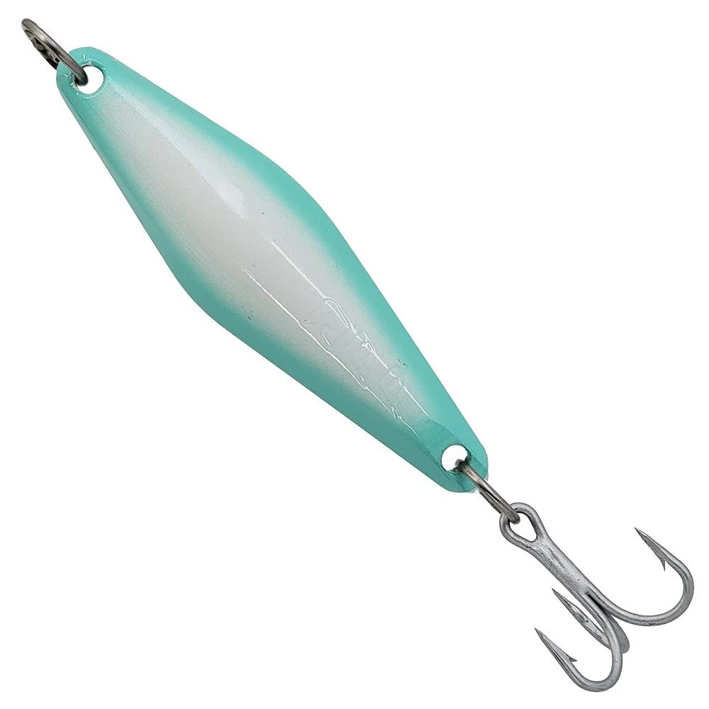 The benefits of precise machining technology has been well received in the surface iron game over the last few years, the accurate tolerances reduce any variance in the swimming action of the jig making every single one a perfect swimmer. These new heavier yo-yo irons are a great addition to our jig catalog, providing a worry free alternative albeit at a higher price. With sand casted or molded jigs you have more chances to go wrong, so sometimes you have to go through a few jigs to get one that swims the way it was originally intended to this can be frustrating but the rewards of finding a jig that swims well are well worth it. These irons are not only very heavy for their size, due to the use of brass, but also all swim the way the designer intended them to. They are nicely ringed, and come with a good treble hook making them useful for any grade of fish.