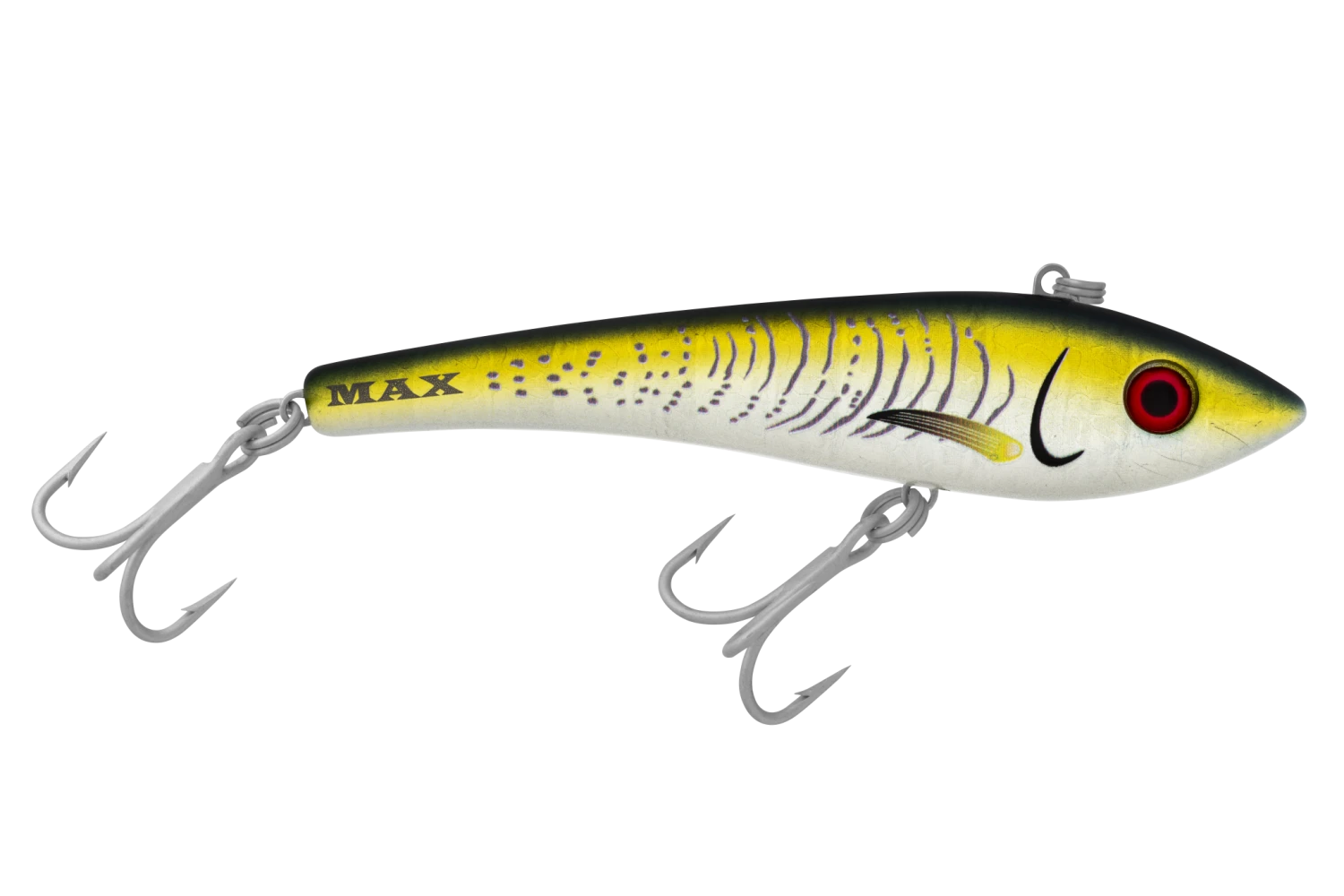 The Max 110 is the baby brother of the other bigger bodies Max lures. The 110 is a perfect bite size for casting at tuna and mackerel schools, but is also comfortable being sunk down and jigged next to coral bombies and structure.