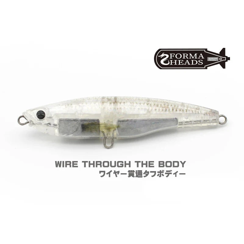 The Forma Heads stickbaits are made to be as easy to use as possible, giving you the most versatility without sacrificing on the performance of the lure. These are a solid sinking stickbait so they should hold up well to abuse, and because of that they’re also very heavy for the size compared to others on the market making them very easy to cast. These are 105mm or just over 4″ long and weigh 52g or almost 2 ounces.