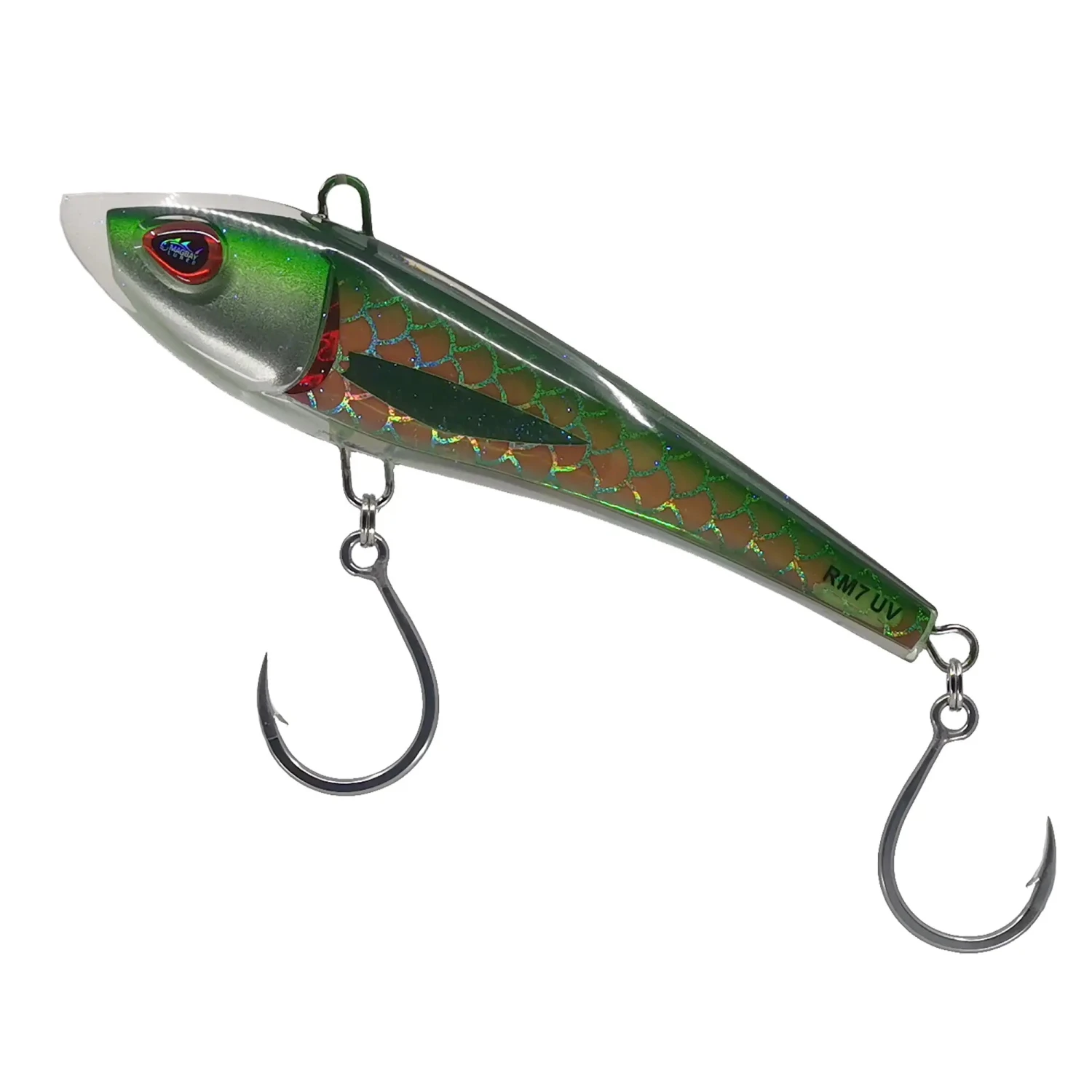 Introducing the next generation of wahoo and tuna lures! The RM7 UV lure is a true innovation, swiftly darting beneath the surface or through the propwash. Backed by a lifetime guarantee, its solid construction ensures durability, while its vibrant internal color promises everlasting beauty.