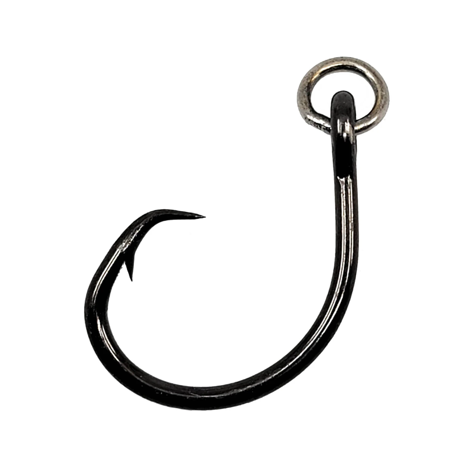 The super strong Mustad Ringed Demon® Offset Circle Hook features a smooth welded action ring, which is a safe anchor point for your line but also providing a live bait with more range of motion and help anglers increase the number of strikes. No wonder it is so popular among tournament fishermen. It features 4X strong wire and making it the ultimate hook to target true giants. The distinct curved shape of the circle hook will, when the fish takes the baited hook and swallows it, ensure that the hook travels to the corner of the mouth or lip, resulting in fewer deep-hooked fish. The circle hook can be used for a whole range of applications from drifting with live bait for Tarpon or trolling for Marlin. When live baiting, always choose a hook size that matches the bait. Setting the hook is more of a firm tightening of the line, than an actual strike. The hook has a kirbed hook point for improved hookset. It is in other words, the ultimate Catch&Release hook. Use it to fish for a whole range of fresh and saltwater species, such as Wahoo, Marlin, Snapper, Roosterfish, Tarpon, Amberjack, Mahi Mahi/Dorado, Sailfish, Grouper, Skipjack, Catfish, Goliath Tigerfish, Nile Perch or Arapaima.