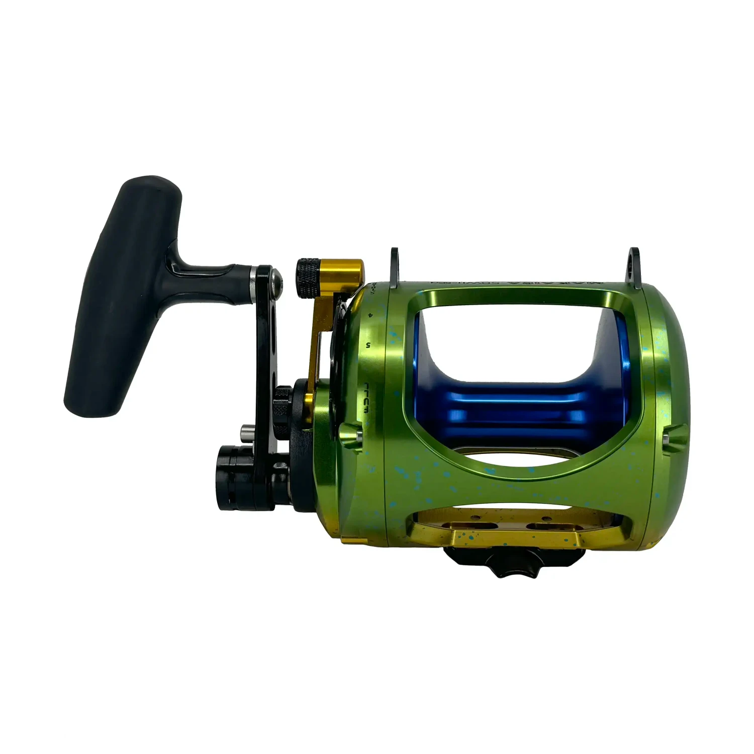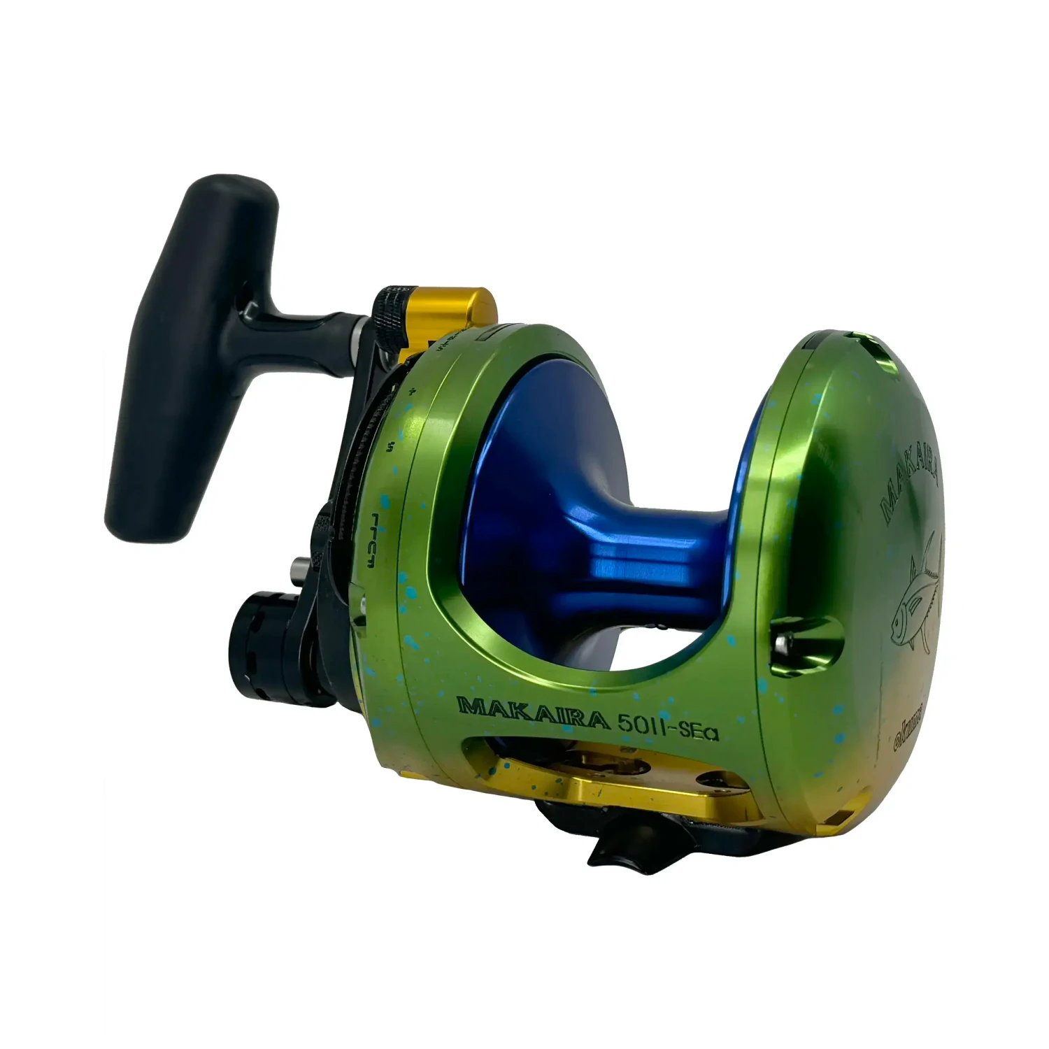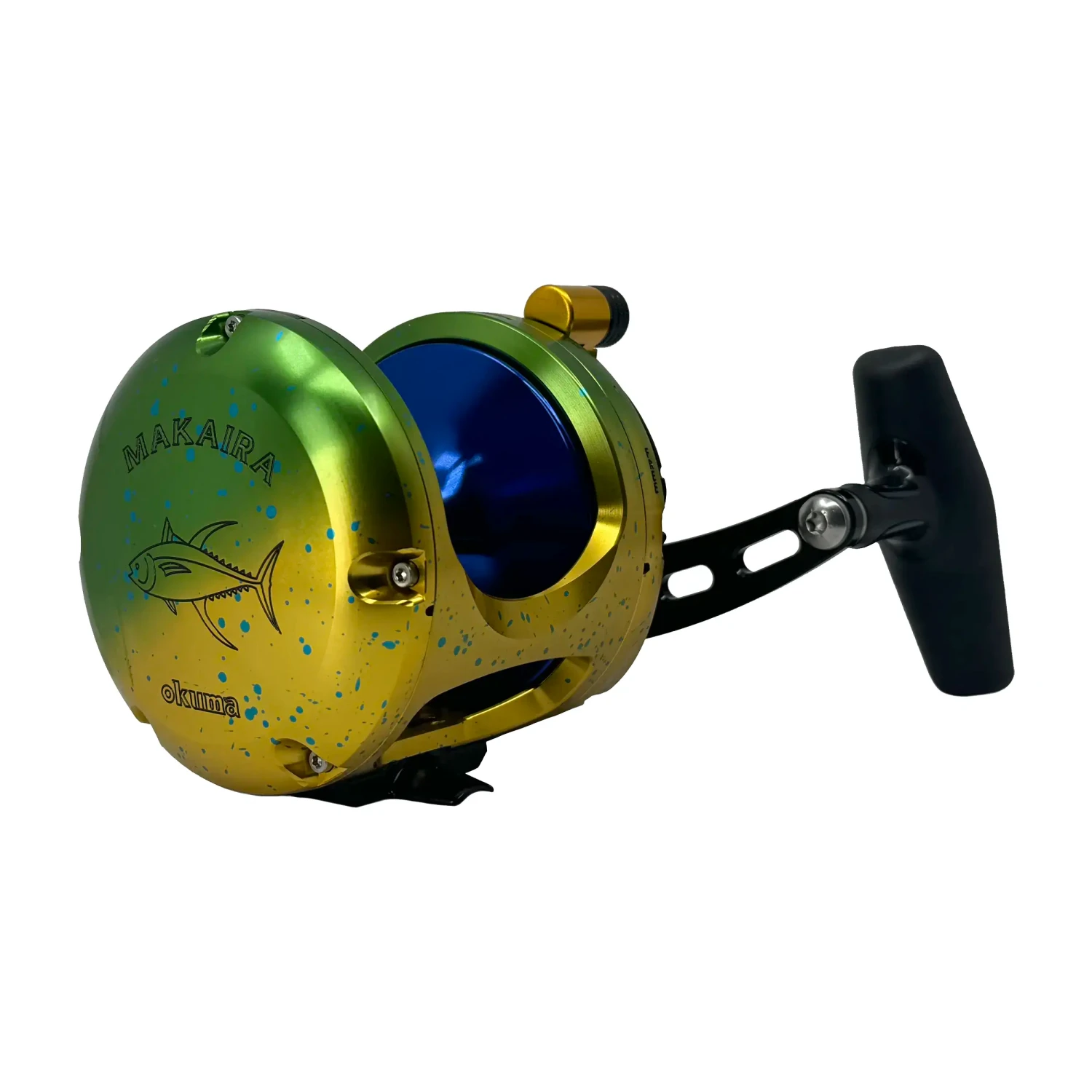 This year’s limited edition Makaira color is Mahi Mahi, with a fade from green to gold along with blue spots these reels stand out well just like the last limited color blue camo. These version feature the upgrade handle knob that you find on the LBS edition, it’s a bit smoother and more refined. Along with that you also get the new louder and more durable clicker design which is a welcome addition.