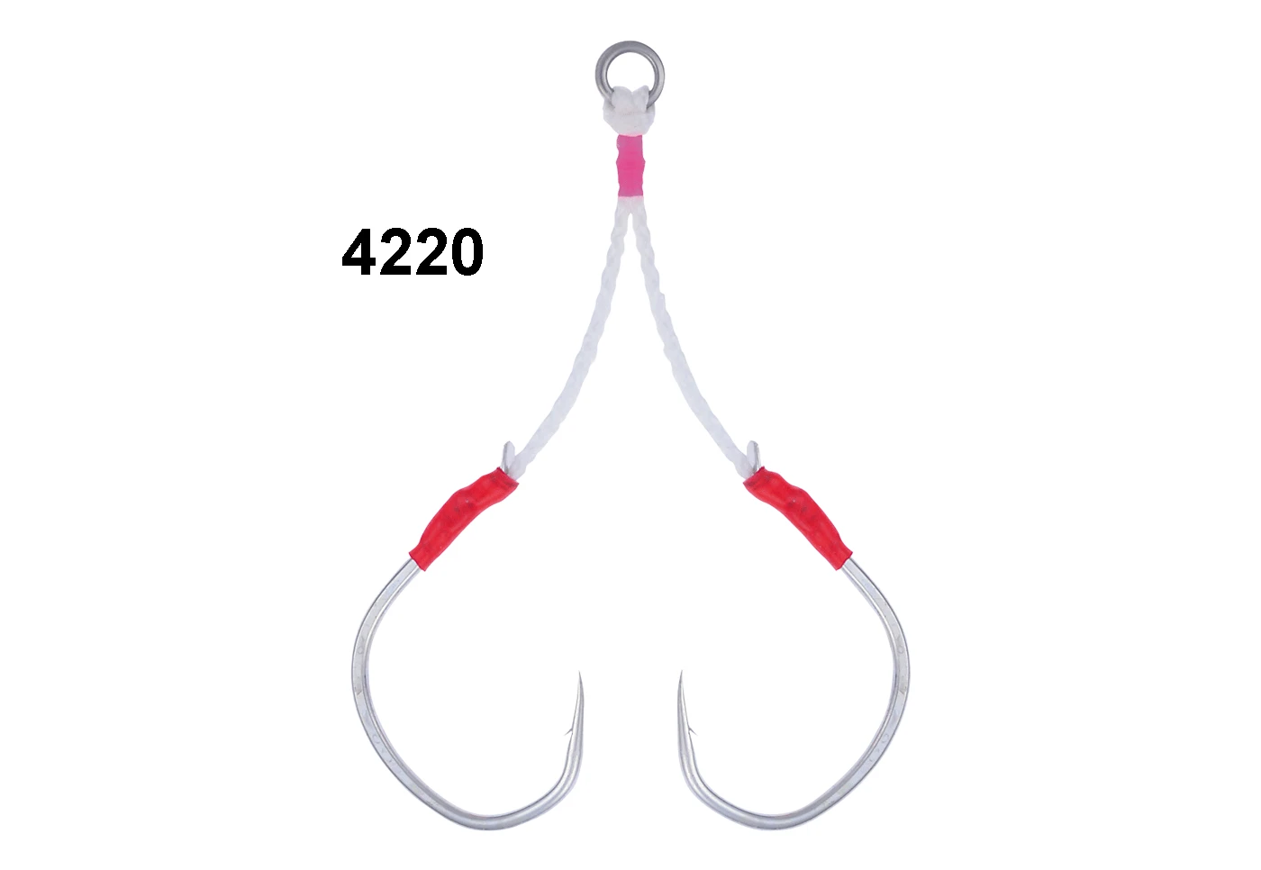 The Dual Dancing Stinger hooks from Owner are a good option for guys into slow pitch jigging. They use lighter wire wide gap hooks to let you get an easier hook set on lighter line, or softer action rod. They have a traditional Japanese design with no eye, instead using a served connection which is a bit sleeker and can be stronger than other methods. They all come in 2 packs which is typically what you’ll use for one jig.