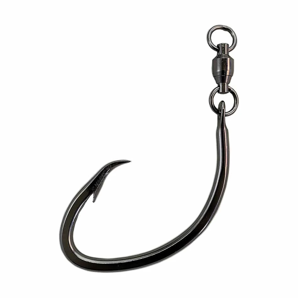 The Charlie Brown Circle Chunk features the same excellent heavy duty circle hook as their regular ringed Circles from Quick Rig, but with one essential difference, a ball bearing swivel attached to the eye of the hook. This allows the chunk to rotate more easily, eliminating line twists and the line test degradation caused by twisted and stressed line under load. It’s a unique hook, made for a particular style of fishing.