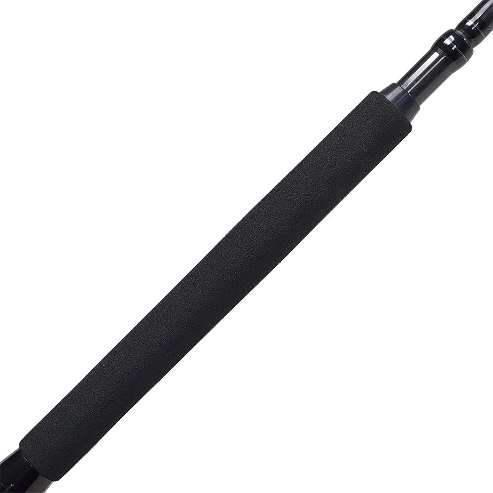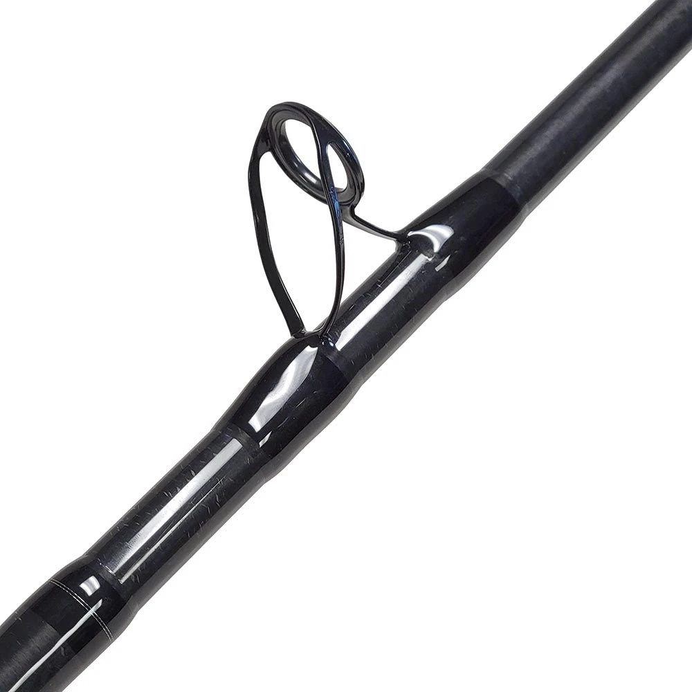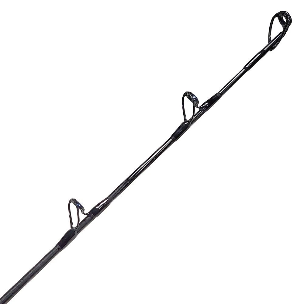 Rainshadow has made top of the line 2-piece popping rod blanks for a while now, they have a ton of power and have a great action for working poppers as well as the added benefit of being able to be broken down for travel. Since we like the two piece design so much we decided to get them wrapped both in spinning and conventional guide layouts since these are very useful rods for all sorts of applications where travel length is a concern. The lighter 80MH model is rated 30-60lb and we think it will fish every bit of that, the tip is light enough to cast smaller jigs and lures while the backbone gives you enough pulling power to bring in some bigger fish. The heavier 80H model is rated 50-100lb and we think it will be a great 60lb and 80lb heavy casting and bait setup in the conventional layout, while still being an excellent popping rod for the biggest 6-12oz poppers in the spinning layout.