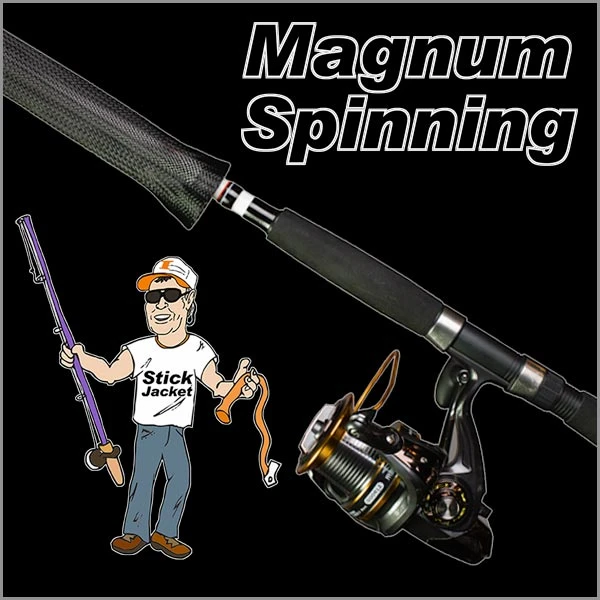 Stick Jacket™ fishing rod covers prevent rod tangles and are easy to use. Their unique braided construction and wide expandability means easy on & off installation. They may be used over large line guides on fully rigged rods. Unlike cloth sheaths, barbed hooks are easily removed. Stick Jacket rod covers are great in boat rod lockers, rod storage tubes, in the back of your truck or going to and from the boat.