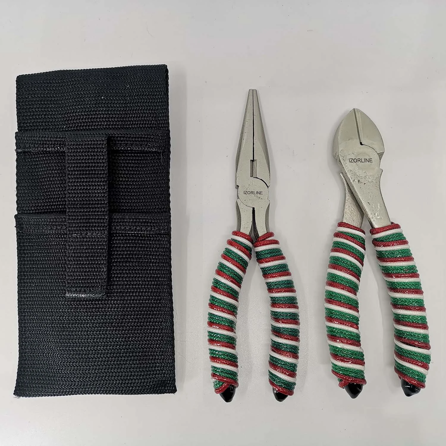 Each plier set is wrapped locally in a few different patterns. This set includes an 8″ Needle Nose and a 7″ Big Head cutting plier from Izorline, along with a nylon sheath.