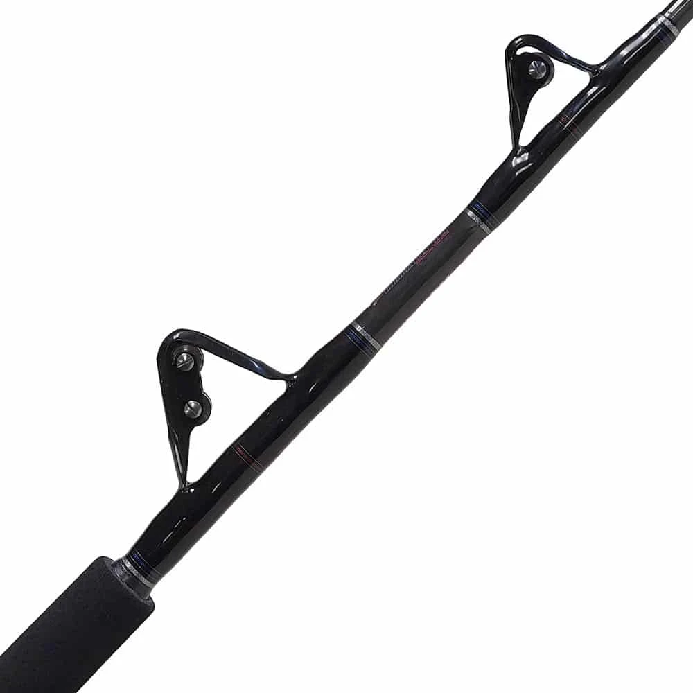 The RCX 40’s are IGFA style big game trolling rods which emphasize pulling power and durability. The blanks come in at only 4 feet long and are made to be used with a unibutt which brings the total length to 5’6″ which is perfect for most heavy duty applications. These are especially great rods for large bluefin and have the guts to pull in the bigger fish quickly. AFTCO Super Heavy Duty wind on rollers are used on all models so you don’t have to worry about your reel size and any kind of knots or connections you want to wind through them. These roller guides also feature ceramic ball bearings so you don’t have to worry about smoothness and corrosion, they are durable and well regarded in the industry. Since these rods are IGFA style their ratings are pretty conservative, the 130lb XOS model is a lot more powerful than rail rods and traditional trolling rods with the same line class, they require a heavy drag to load up well.