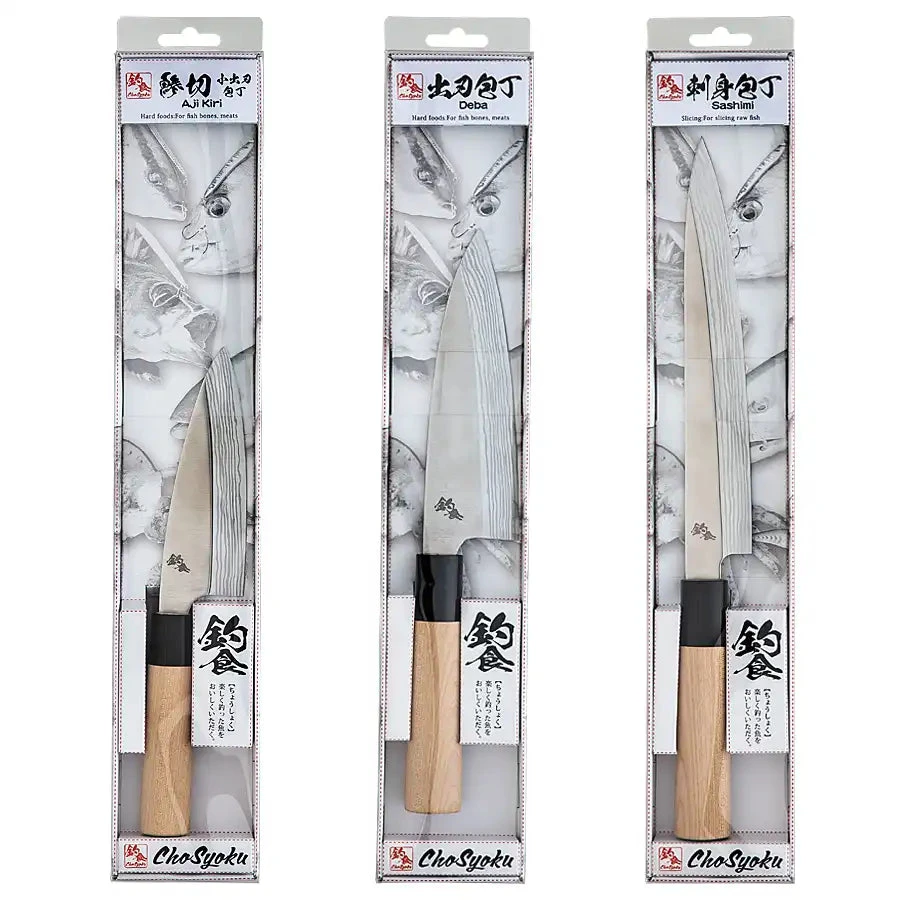 Knives for breaking down fish are essential to any fisherman, this series includes a few of the styles of knives you’d need to get that done. These are all stainless steel knives made in Japan and are great for a variety of purposes. The Deba knives are good for breaking down larger chunks of fish, taking them off the bone especially the larger 150mm size that features a thicker more durable blade. The slicing sashimi knife is mainly meant for the finishing cuts of breaking down larger chunks of fish into smaller ones, or slicing them for sashimi.