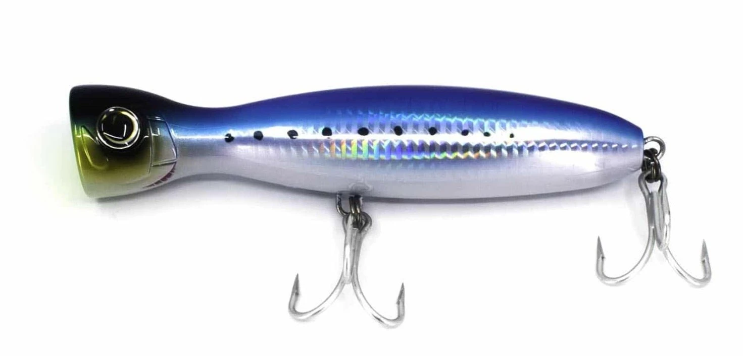 These are a newer addition to the Yo-Zuri catalog, featuring an updated design which will work better for general purpose use. Compared to the Yo-Zuri Bull Poppers these are a bit smaller and sleeker making them easier to cast in the comparable smaller sizes. If you’re looking for lures to use for school sized yellowtail and tuna these will be a great addition to your arsenal. Both sizes feature 3X hardware so you won’t have to worry about breaking hooks or rings. The 4 colors we brought in are tailored to the most applications, the sardine and green mack patterns cover all of our bait needs. The bone and purple black color additional use cases such as surf fishing especially in hotter water, or fishing at night.