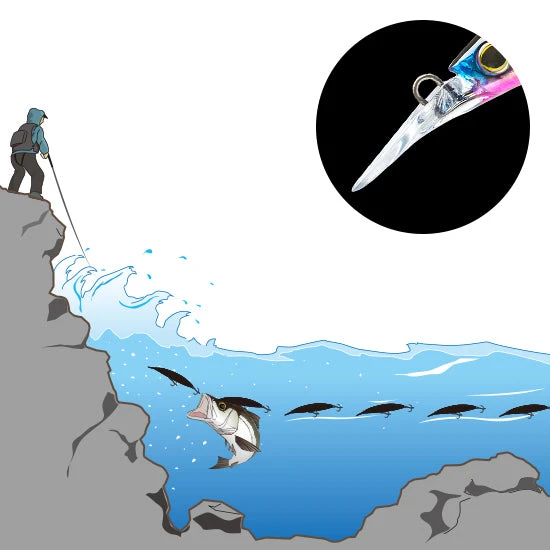These dive 5-7 feet and can be reeled all the way up to structure without surfacing making them perfect for fishing off of the boat or rocks targeting all kinds of pelagic species like yellowtail, yellowfin and bluefin.